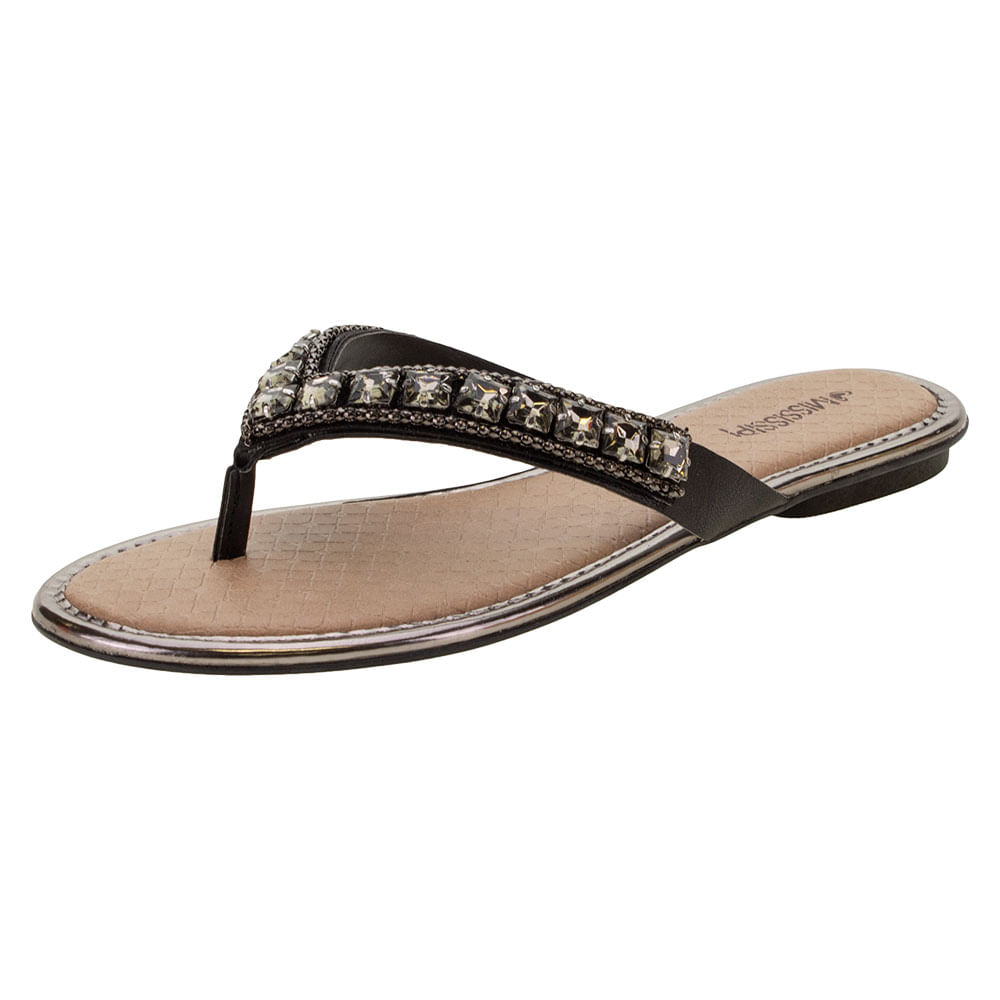 Sandália Feminina Rasteira Preto Mississipi - Q9662 AtacadoPreço Par- 12